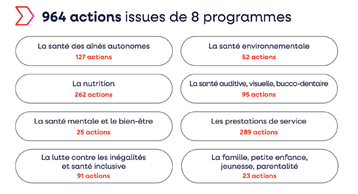 Elle développe une politique de prévention dans une logique d’accompagnement des adhérents des mutuelles et de la population afin de contribuer au maintien et à l’amélioration de la santé de tous. L’ensemble des actions déployées est accessible à tous.